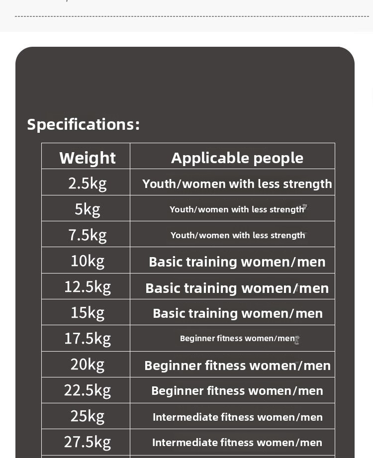 Versatile Weight Options: Available in various weights from 2.5kg to 20kg per piece or pair, suitable for different fitness levels.